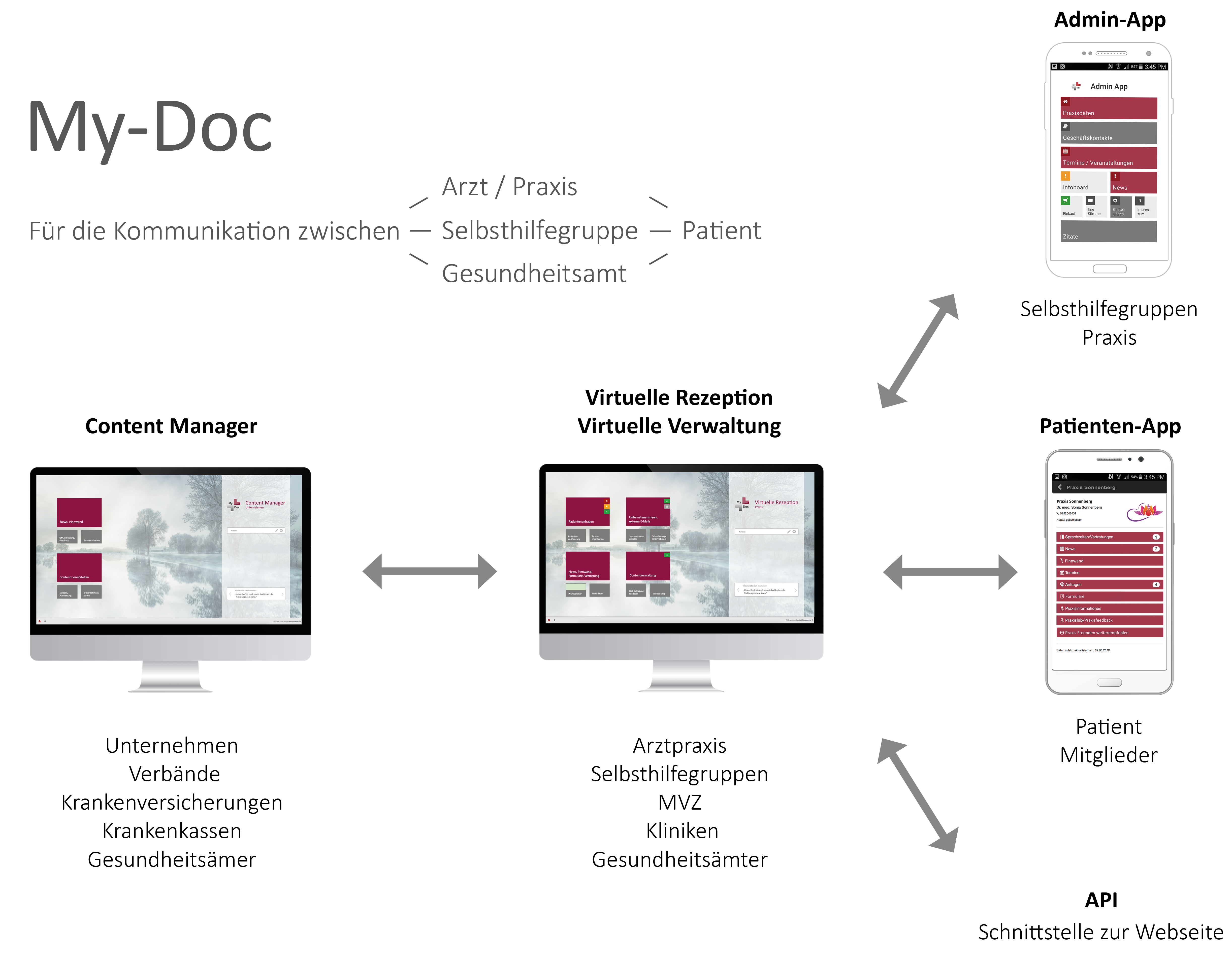 Mit My-Doc tragen wir dazu bei, in der zunehmend digitalen Zeit die Kommunikation zwischen Patienten, Arztpraxen und anderen medizinischen Dienstleistern zu verbessern. Durch den Informationsaustausch und unkomplizierten Verwaltung von Daten erleichtern wir Prozesse und geben Ihnen dabei die Möglichkeit diese auszubessern und zu verändern.
